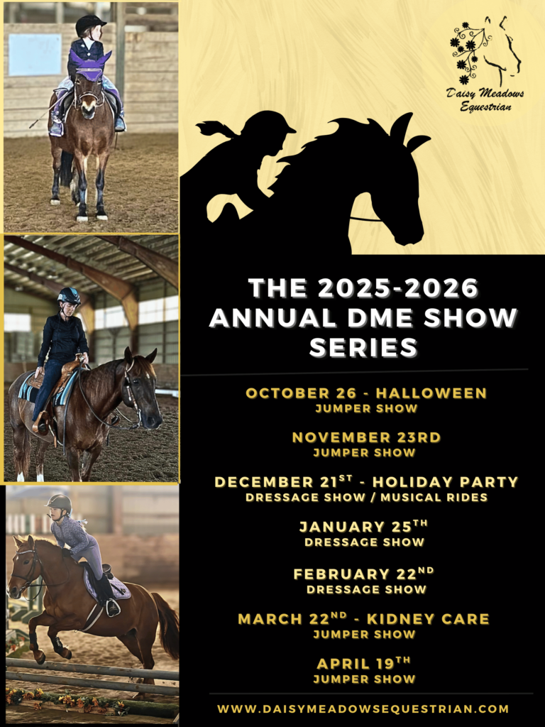 Attend two (2) of either the jumper or dressage shows to qualify for our Year-End Awards! Everyone is welcome, even if you don’t qualify for awards.