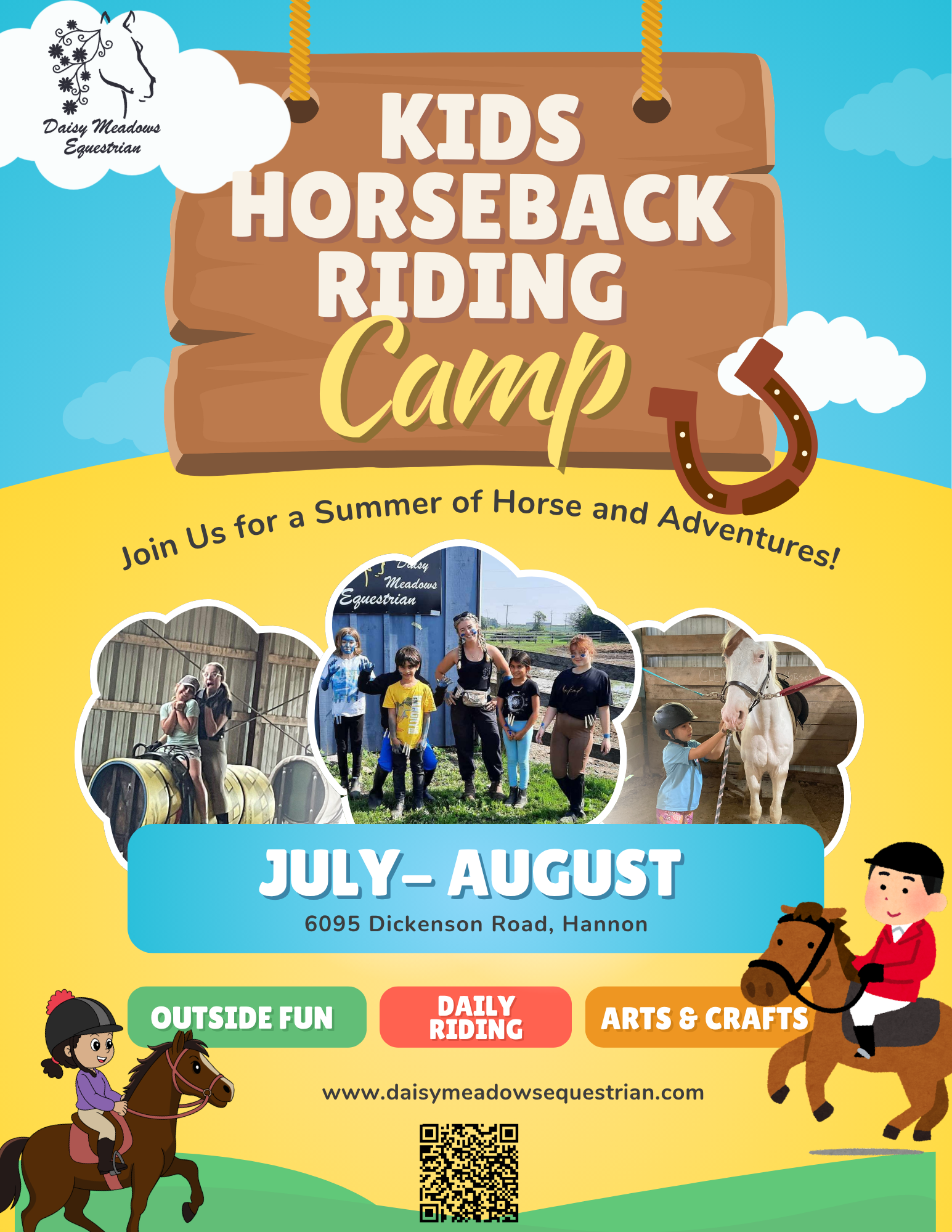 Back this year is our Parent Pizza Party Day! Friday’s will consist of a pizza party lunch for all campers, and parents will be invited to watch a special musical ride performance put on by the campers. Campers will then have the opportunity to give their parents a barn tour and introduce them to their horses.